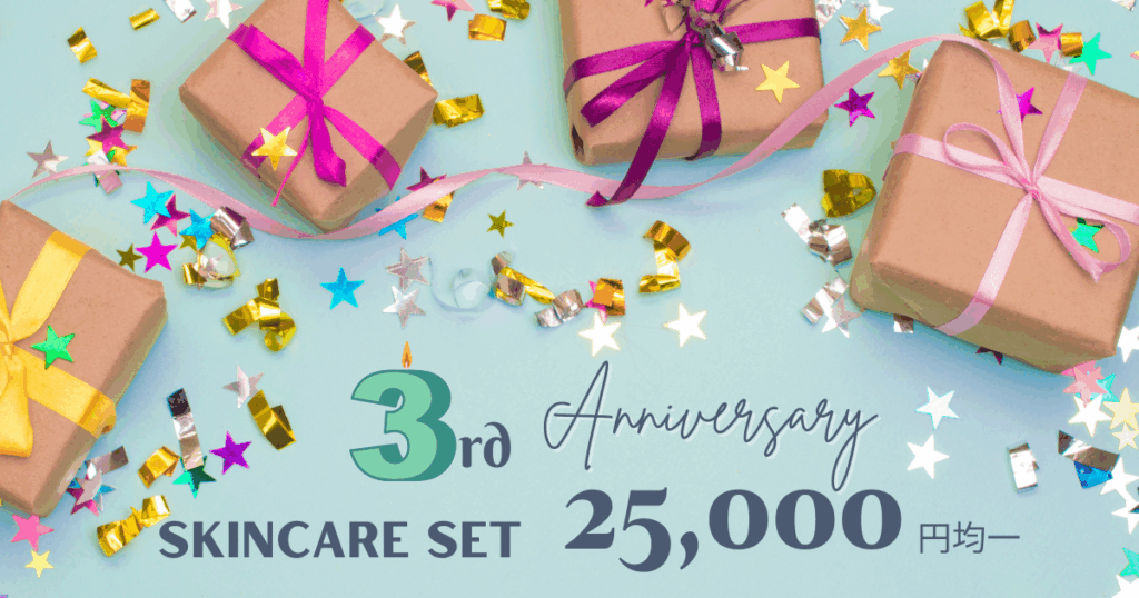 🎉3周年記念キャンペーン 第2弾スタート!🎉おかげさまで第1弾スキンケアセットはご好評につき完売いたしました。誠にありがとうございます🌸 第2弾では、前回よりバージョンアップした内容とさらにお得な組み… 続きを読む: 3周年キャンペーン 第2弾スタート - 3周年キャンペーン 特別プログラム