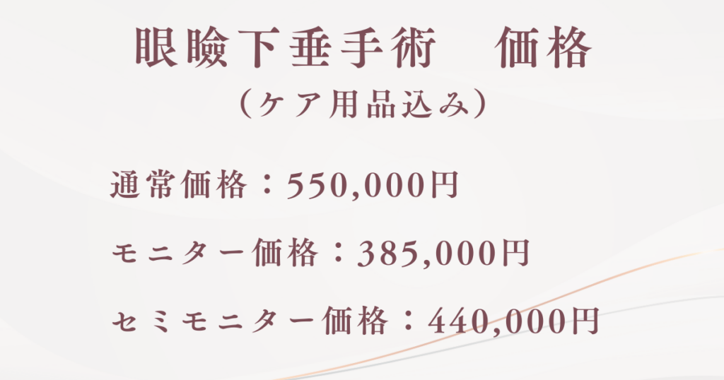 手術後にパーフェクトセット1回分(エレクトロポレーション3回 通常¥40,000)、エニシーグローパック1箱(通常¥24,200)、Fジェル2本(通常¥13,200)、ワカサプリC+D3箱(通常1箱¥5,840)、創傷治癒を促進する漢方薬等が含まれます。