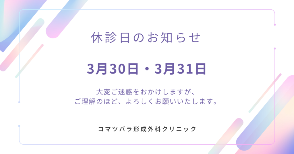 3月30日(月)、3月31日(火)は、クリニック休診日となっております。よろしくお願いいたします。 - 眼瞼下垂手術のご案内