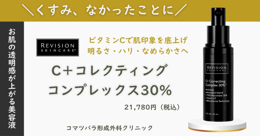 リビジョンスキンケアのお取り扱い開始しました💫 【C+コレクティング コンプレックス30%】 “くすみ、なかったことに” 高濃度ビタミンC(THDアスコルビン酸30%)配合。抗酸化作用により、くすみ・… 続きを読む: リビジョンスキンケア② - リビジョンスキンケア①