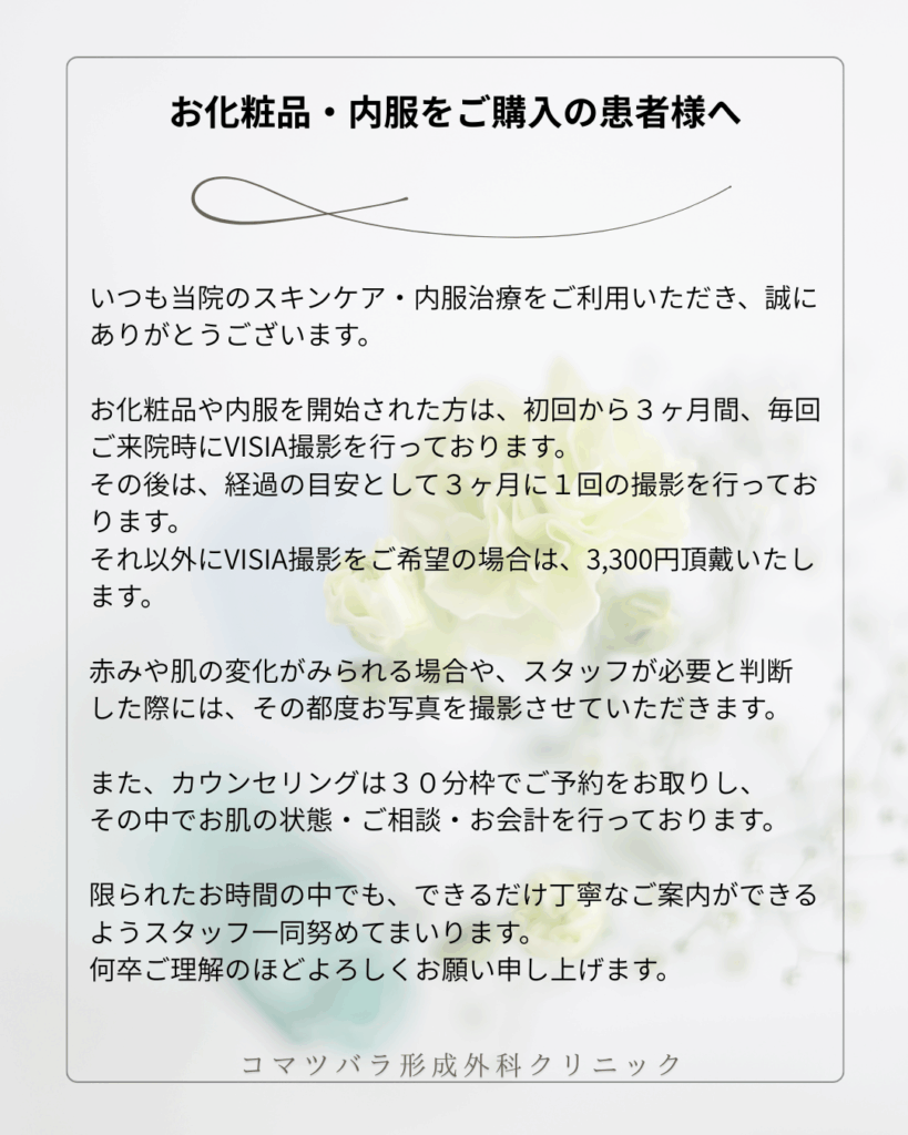 お化粧品・内服をご購入の患者様へ