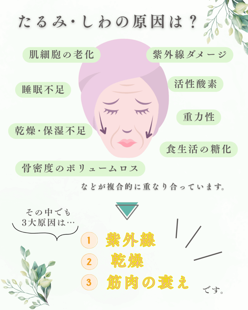 まず、たるみ・しわの原因として
