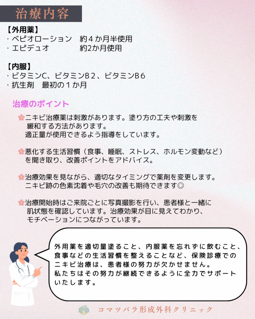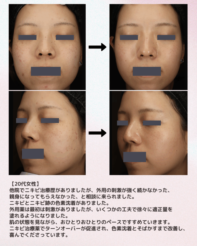 他院でニキビ治療を受けていましたが、外用薬の刺激が強くて続けられず、当院へご相談に来られました。