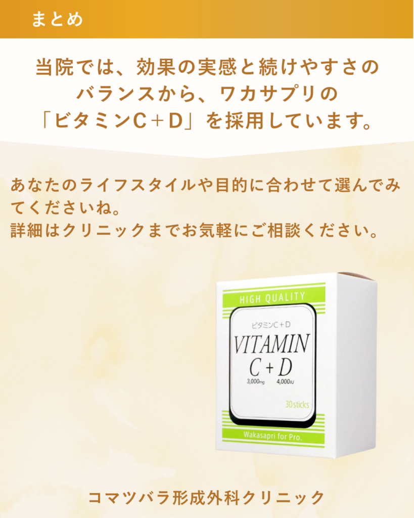 コストを抑えつつ、しっかり効果を出したいなら「高濃度ビタミンCを1日1〜数回」摂るのが賢い選択かもしれません。