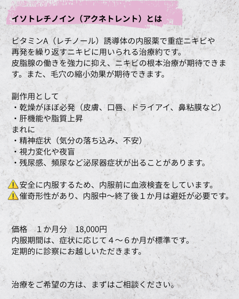 毛穴治療〈イソトレチノイン内服〉