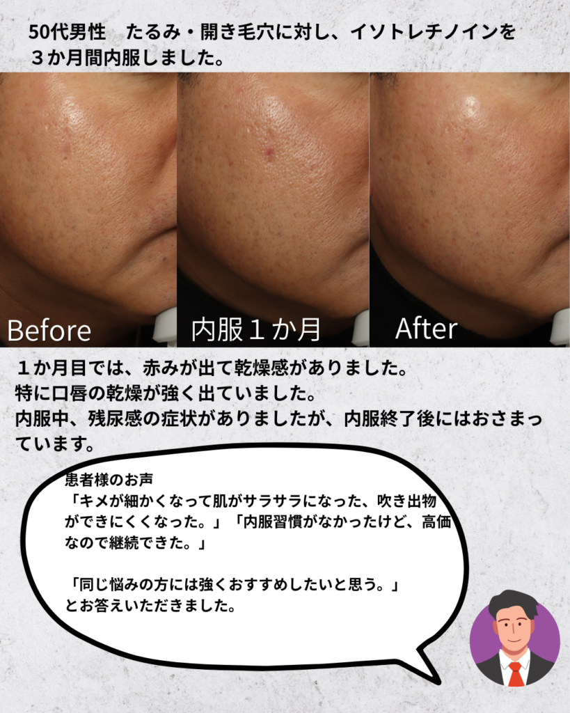 たるみ毛穴/開き毛穴に対して、イソトレチノイン内服治療を行いました。
