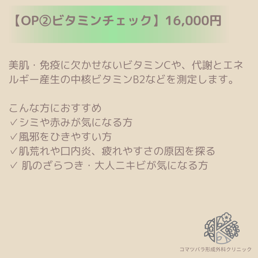 などを血液から詳しくチェックできる「美容採血」をご用意しています。