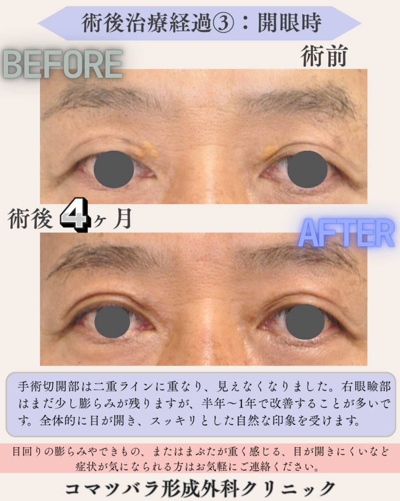 症例のように、当院では瞼の症状やお悩みに合わせて適切な手術法をご提案させていただきます。